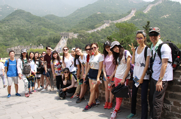 随后,两校员工按计划前往八达岭长城。大巴车行驶在盘山公路上,大家看着两侧的崇山峻岭已然按耐不住内心的激动之情,景点入口处“不到长城非好汉”的石碑更是点燃了内心对长城的无限憧憬。攀爬过程中,尽管部分路段过于陡峭,令人瞠目结舌,但两校师生气氛友好,互相鼓励搀扶,最终绝大部分师生都登上了顶峰。看着脚下的路,大家不禁想到修建长城的工匠们是何等辛苦,长城无愧于“世界七大奇迹”之一的称号。看着周围的中外游客,不论老人孩子,一张张洋溢着兴奋与喜悦的脸,大家不禁感叹祖国大好河山的神奇魅力,一座长城可以把不同年龄,甚至不同种族的人联系到一起,为了一个目标共同努力奋斗。