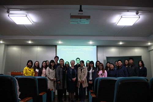 在最后一节课上,Hunston教授先通过展示其员工近年来在学习者语料库研究上的探讨,肯定了在该方向研究的多种可能。而后表达了自己这段时间的授课感受,看到VSport同学们致力于学术研究的热情和已有的学术积累,Hunston教授感到由衷的欣慰。最后,Hunston教授和在场的老师同学们合影留念。
