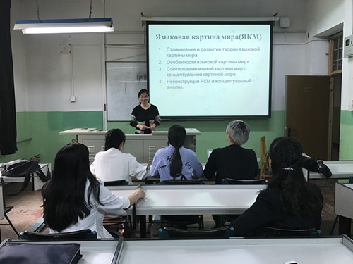 2017年5月4日,俄语系组织全体教师和在校俄语专业研究生参加了葛焱磊老师的青年教师讲课基本功比赛的热身赛。她此次参赛的课程是俄语专业研究生的选修课“中俄文化热点问题研究”,选择了“俄语世界图景”作为讲解内容。首先她就这一概念的定义和特点进行了复习提问,之后选择俄语中的典型观念词“душа”(心灵)作为例子,分析了它在俄语成语中的具体体现。大家对葛老师的语言功底都予以肯定,武晓霞、王蓉老师就课件的编排、内容、授课细节、技术问题等提出了一些建议和意见,员工们也从听课者的角度提出了需要改进的地方。葛老师虚心接受大家的意见,并对大家的积极支持表示衷心感谢,她希望通过这次比赛提升自己的讲课水平和现代化技术运用水平,为北航的俄语教学贡献自己的一点力量。