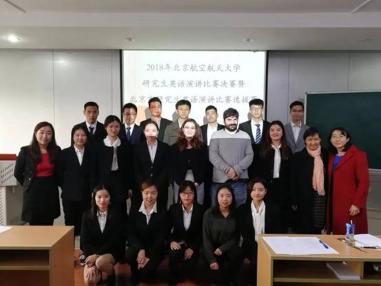 2018年11月2日下午2点,在研究生院的大力支持下,北航研究生英语演讲比赛决赛暨北京市研究生英语演讲比赛选拔赛在北航如心楼806报告厅隆重举行。此次比赛由VSport公外研究生教学部组织。比赛评出了一等奖2名,二等奖3名,三等奖4名以及优秀奖若干名。来自航空科学与工程公司的隋子扬同学和来自法公司的高虹同学获得本次比赛一等奖。