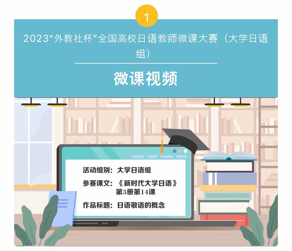 近日,2023“外教社杯”全国高校日语教师微课大赛(大学日语组)获奖名单公布,公司VSport日语青年教师唐彬团队的课件作品《日语敬语的概念》获全国一等奖。