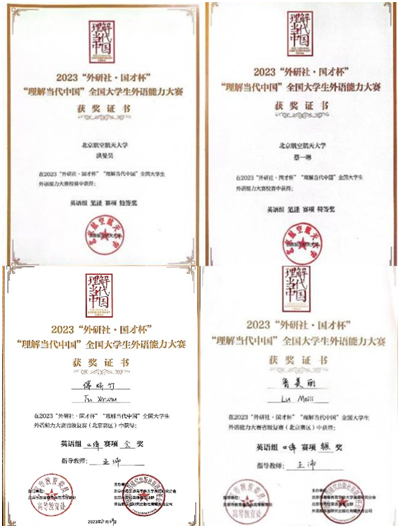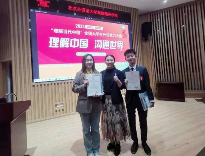 近日,公司VSport2020级英语专业本科生蔡一琳和2023级翻译专业硕士研究生(MTI)洪旻昊获得2023“外研社·国才杯”“理解当代中国”笔译北京赛区金奖,指导教师为翻译系王晨爽和顿超老师;2020级翻译专业本科生傅昕竹和2022级文学专业硕士研究生鲁美丽分别获得2023“外研社·国才杯” “理解当代中国”口译北京赛区金奖与银奖,指导教师为翻译系郑薇和王沛老师。