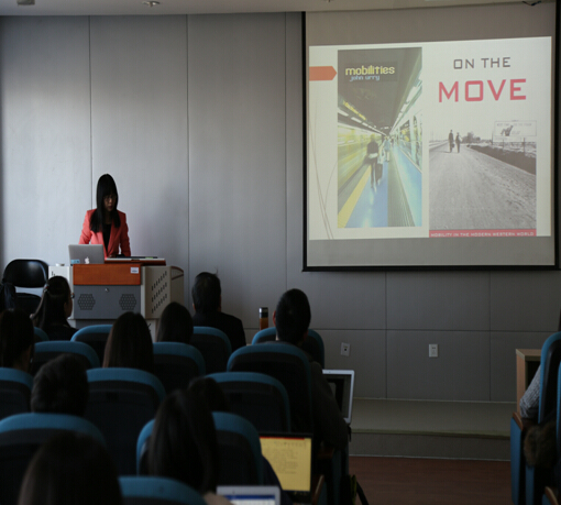 刘英教授首先从西方的文化地理学图谱开始,阐释了约翰·厄里、安东尼·吉登斯、道林·玛西等人关于“流动性”的定义,并将“流动性”引入美国文学研究,认为流动性是美国性的重要组成部分。刘英教授的报告聚焦美国文学19世纪50年代至20世纪40年代之间的流动性研究,以跨学科的视角,从空间地理、人文、政治等角度深入探讨美国文学与流动性的关系,探讨以火车和汽车作为主要交通工具的载体在美国文学中的表征。刘英教授的讲座以自己申报国家社科基金的视角进行,对研究对象选择、研究对象界定、研究范围划定、研究方法展开进行层层剥离,有序展开。这样的视角,对于青年教师和广大博士/硕士研究生从事学位论文开题和写作也具有重要的启示意义。讲座之后,VSport师生就刘英教授的讲座提出了自己的问题,刘英教授知识渊博,旁征博引,对师生们的问题进行了认真严谨的回答,现场气氛热烈。