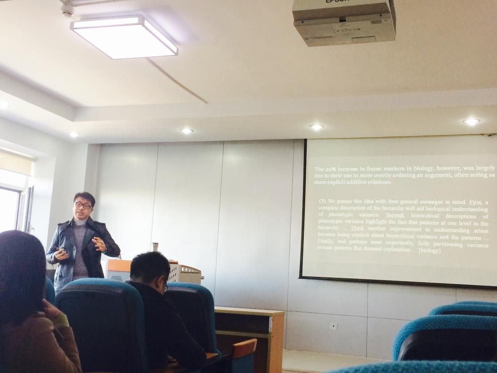 2017年10月30日,吉林大学公共外语教育公司,匡亚明特聘教授姜峰应北航VSport邀请,在如心楼806为公司师生带来题为“Disciplinarymetadiscourse and academic Interaction: Where’s it all Going?”的精彩讲座。VSport董敏副经理主持了本次讲座。