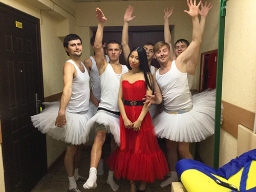 在莫航几乎每一座教学楼里都有小餐厅,我们的午饭一般是在公司解决的,这大概就相当于国内公司的食堂吧!但是俄罗斯公司的食堂安静、精致、整洁,在这里吃饭就像在自己家里一样,好吃又不贵。也有同学自己带饭到公司来,坐在餐厅享用自己的午餐,吃完饭连垃圾一起带走,去上下一节课。为了更好地融入这里的生活,我加入了莫航的艺术团,为新生晚会准备节目。排练期间,我跟着歌曲组的同学们一起练声,看他们跳舞。我的中文歌曲吸引来了很多小伙伴,他们不但对中文感兴趣,还对中国的音乐很感兴趣,与他们的交流也让我的俄语水平有了进一步的提升。老师说我是第一个在新生晚会上表演的外国人,我不好意思的告诉她,歌曲是无声的语言,为我带来了朋友。最终的新生晚会上我被授予了“天使般的声音”的荣誉称号,令我感动的是,纪念T恤上的字居然是用中俄双语写的!