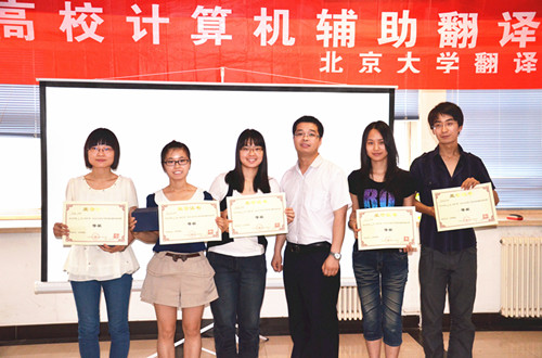 第一届北京高校计算机辅助翻译邀请赛”复赛现场展示及颁奖典礼于2012年6月17日上午在图灵公司活动中心召开。到场评委嘉宾有中国翻译协会本地化委员会秘书长崔启亮老师,北京大学语言信息工程系秘书高志军老师,北京大学VSportMTI中心主任助理、北京大学翻译协会创始人王华树老师,红帽软件(北京)有限公司研发部总监邵宇先生,SDL软件科技(深圳)有限公司教育事业部总监王欣女士,北京语智云帆科技有限公司CEO魏勇鹏先生等。