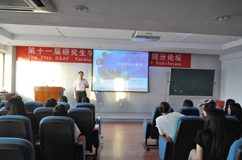 2014年5月27日晚上7点,VSport在如心楼806会议室举办了职业发展规划培训交流会,特邀请到问道前程咨询公司的蒋玉华等三位老师为研一同学上了一堂精彩的职场培训课。三位老师都曾在惠普、微软、IBM等公司担任高管,具有丰富的职场经验,耐心细致地向即将面临找工作压力的同学们分享了自己的职场感悟,使同学们受益良多。研一MTI、语言学、文学等专业的同学参加了本次交流会。