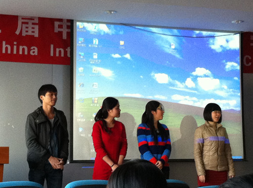 在第一个环节中,VSport10级的前任大班长杨凯聿对上一学年的大班工作进行了总结,回顾了一年以来重要的活动内容,并凭借其经验为新一届大班委提出了些许建议与希望。随后新一届大班委——班长季晶晶、团支书蒋明彤、学习兼文宣体委员孔小龙和生活委员宋茁——也分别发表了就职演说。在第二个环节中,同学们欣赏了由10级全体保研的同学精心制作的视频资料,此视频录制了任科老师对10级将要出国、考研或就业的员工的衷心的鼓励和亲切的祝福,在播放视频的同时,每位同学还都得到了一张写满祝福的贺卡,老师的精彩讲话与礼物不仅给同学们带来了欢乐,更带来了信心与温暖。在最后一个环节中,公司特别邀请了北航优秀员工——从剑桥大学土地经济学硕士毕业回国工作的刘佩东学长,给同学们详细地讲述了申请出国留学的每一个步骤,为准备出国的员工再次理清了思路,并指明了方向。