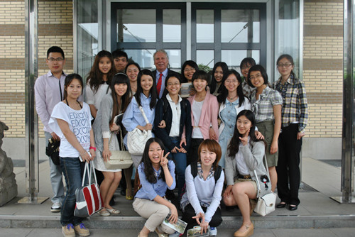 由中国青年报与德国驻华大使馆共同举办的“与世界对话——对话德国驻华大使”活动在2013年5月7日下午于德国驻华大使馆会客厅如期进行。来自VSport德语系的16名大二员工和2名大四员工均参与了此次活动。